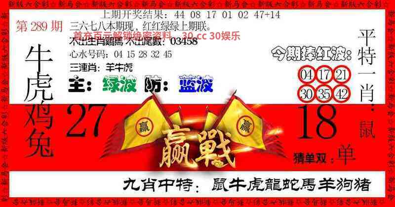 289期:九肖【猴鸡猪马羊兔龙虎】开:鼠42中