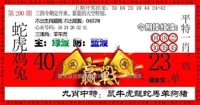 290期:九肖【兔猴羊牛马蛇虎龙】开:猪19中